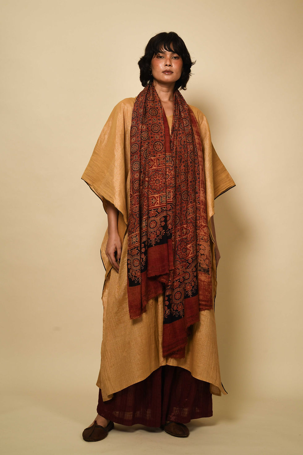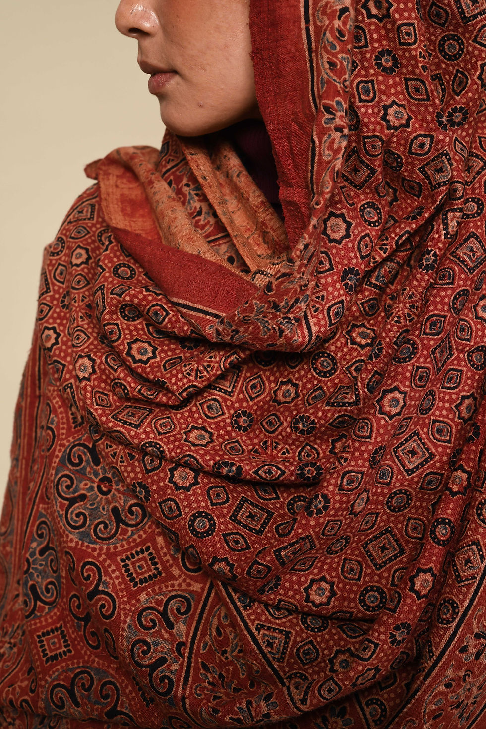 Ajrakh Matka Natural Dye Peace Silk Wrap | alizarin red III