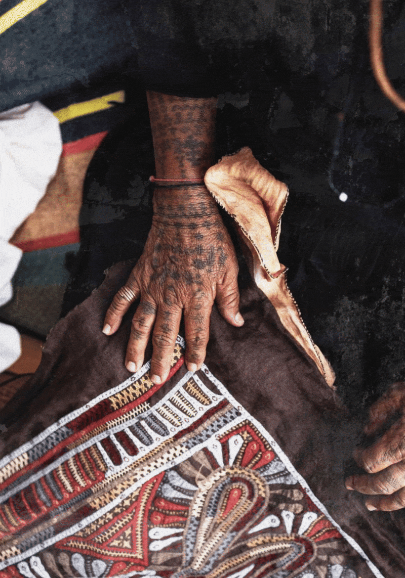Among our craft collaborators, this knowledge is embodied. It moves from generation to generation and hand to hand through repetition and practice - in the tension of thread, the weight of cloth, the resolution of a stitch. Hands remember what language cannot fully contain.